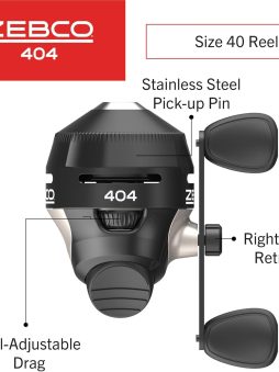 Zebco 404 Spincast Fishing Reel, Size 40 Reel, Right-Hand Retrieve, Built-in Bite Alert, Durable All-Metal Gears, Stainless Steel Pick-up Pin, Pre-Spooled with 15-Pound Zebco Fishing Line, Black